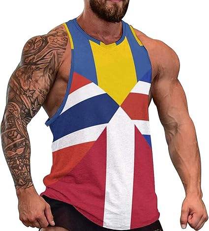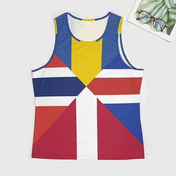 เสื้อกล้ามออกกำลังกายลำลองสำหรับผู้ชายลายธงชาตินอร์ดิก ระบายอากาศได้ดี เป็นมิตรกับสิ่งแวดล้อม แห้งเร็ว ป้องกันรังสียูวี เหมาะสำหรับฟิตเนสและยิม