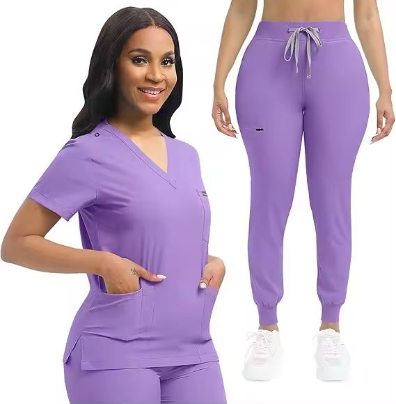 ชุดยูนิฟอร์มพยาบาลแบบสั่งทำ ผ้าสแปนเด็กซ์ยืดได้ 4 ทิศทาง ชุดยูนิฟอร์มโรงพยาบาล ชุดสครับทางการแพทย์ ชุดสครับแฟชั่น ชุดยูนิฟอร์มคลินิกทันตกรรมและพยาบาล