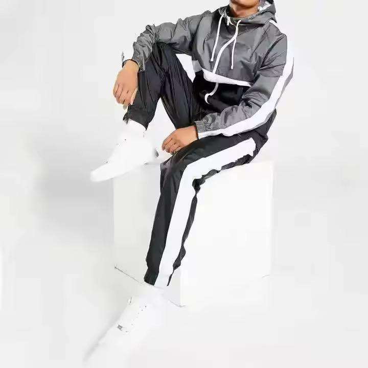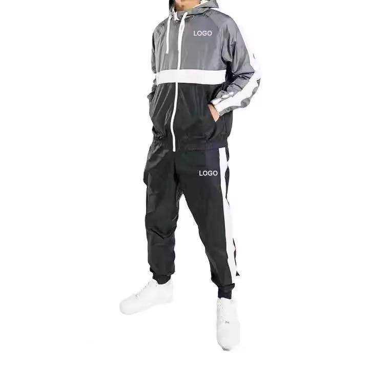 ชุดวอร์มผู้ชายผ้าซาตินเรียบแบบสตรีทแวร์สไตล์วินเทจ กันลม แห้งเร็ว เหมาะสำหรับออกกำลังกาย ทรงโอเวอร์ไซส์