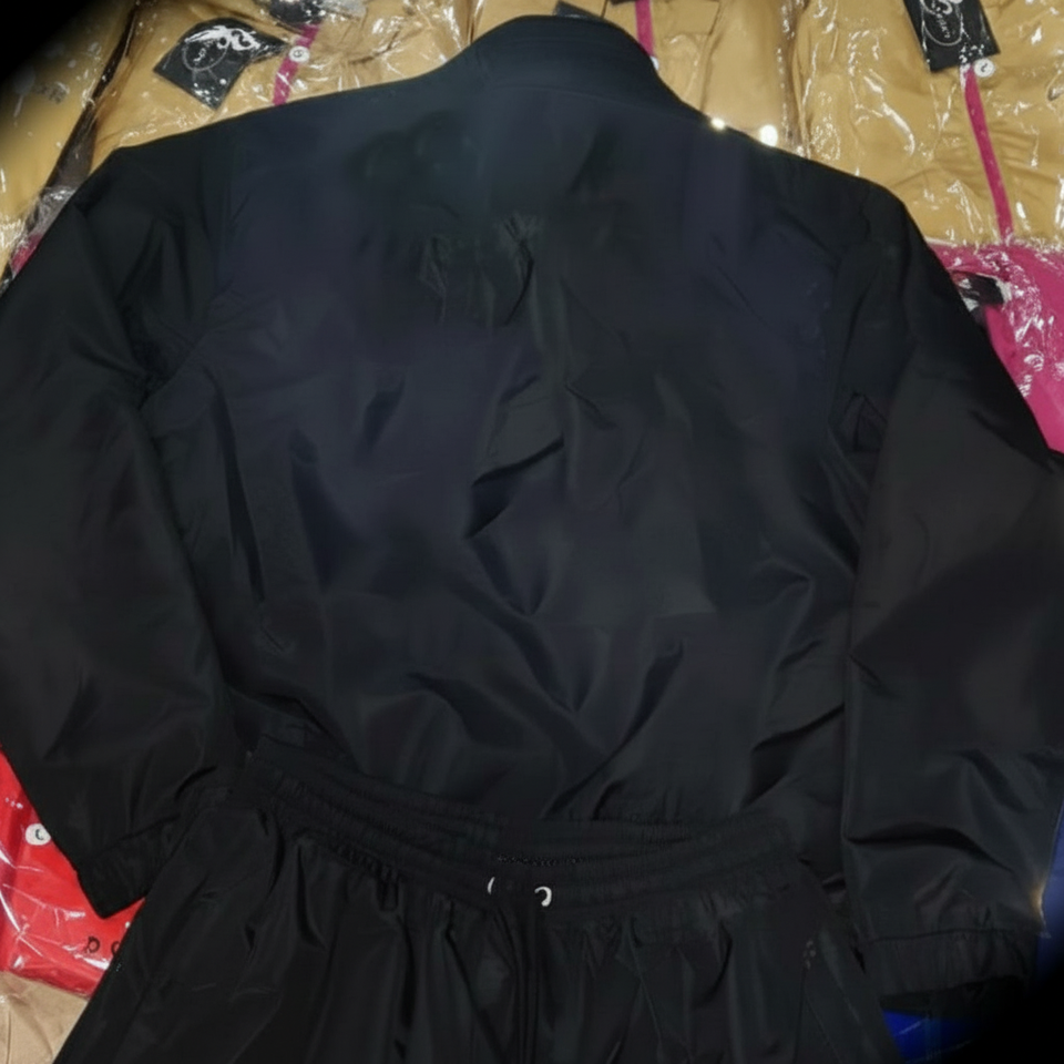 ชุดวอร์มไนลอนแบบมีซิปพร้อมฮู้ดและกางเกงขาสั้น ชุดวอร์มคุณภาพสูงแบบเรียบ