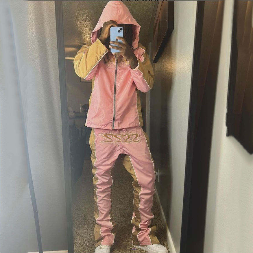 ชุดวอร์มไนลอนแบบกำหนดเองสำหรับฤดูหนาว เสื้อแจ็คเก็ตซิป กางเกงขายาว ชุดลำลองกันลมหนา ชุดวอร์มกันลมสำหรับผู้ชาย
