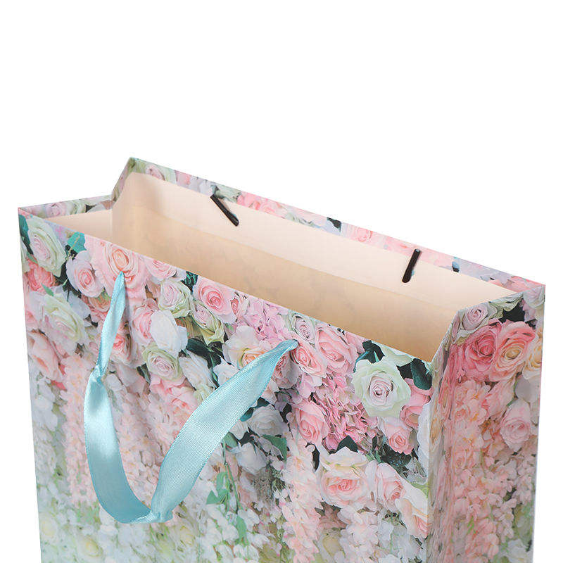 ถุงของขวัญกระดาษคราฟท์เคลือบลามิเนตแบบกำหนดเอง ODM เป็นมิตรกับสิ่งแวดล้อม ดีไซน์ใหม่ พร้อมหูหิ้วริบบิ้นหลากสี สำหรับร้านขายเสื้อผ้าและเทียน