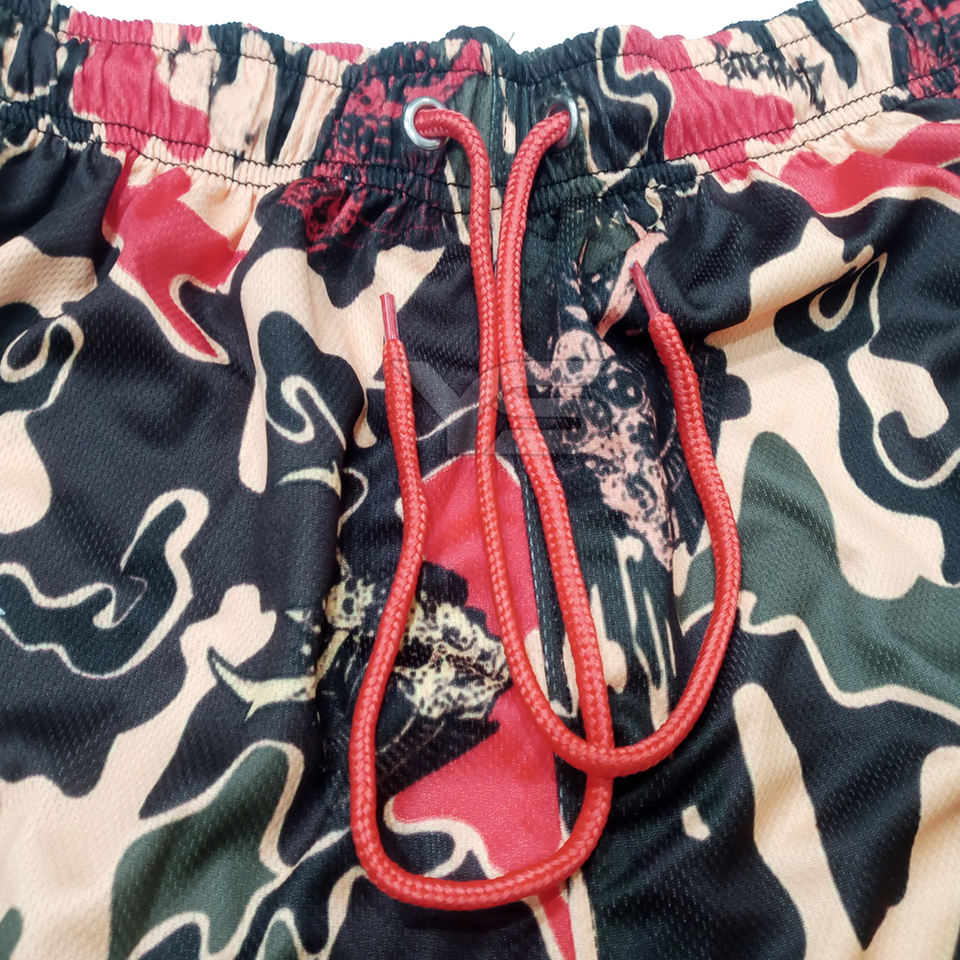 กางเกงขาสั้นชายหาดของผู้ชายสีทึบแบบผูกเชือกเอวกระเป๋าปักโลโก้แบบลำลองทำจากโพลีเอสเตอร์100%