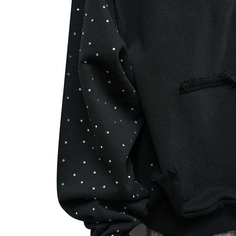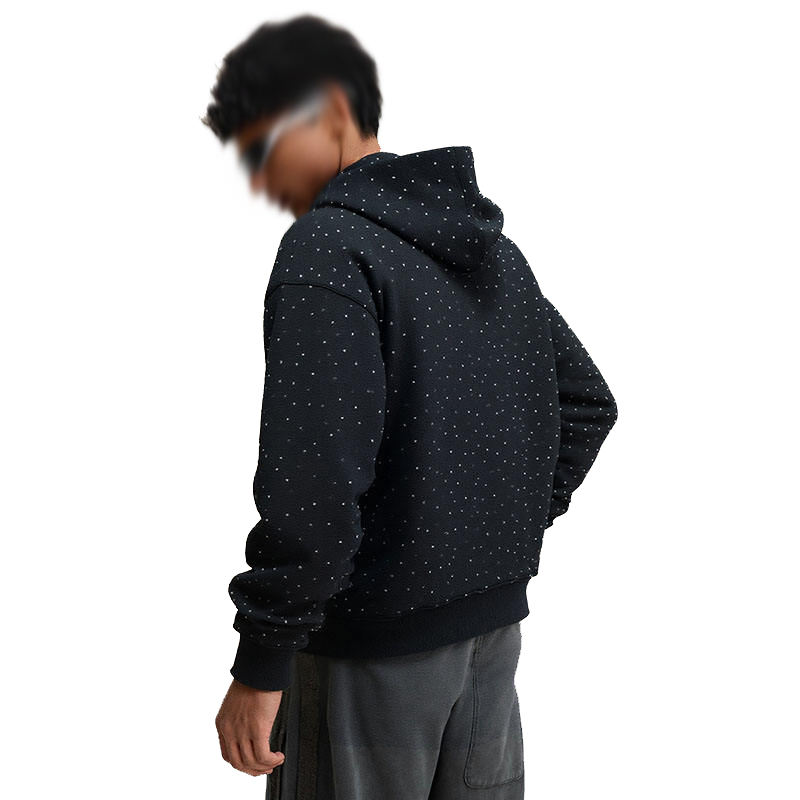 เสื้อฮู้ดดี้ผู้ชายสไตล์สตรีทแวร์ ทรงโอเวอร์ไซส์ ตกแต่งด้วยคริสตัล ผลิตตามสั่ง (OEM) ผ้าฝ้าย 100% ทรงไหล่ตก