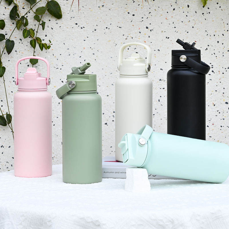 ขวดน้ำเก็บความเย็นแบบสุญญากาศสแตนเลส OEM ขนาด 32 ออนซ์ พร้อมฝาปิดกันฝุ่นแบบเลื่อนและหลอดดูดแบบล็อคได้