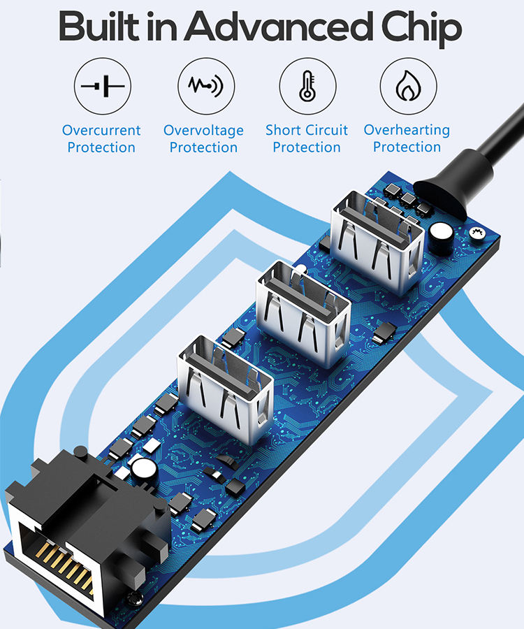 ฮับ USB แบบ4 in 1 2.0พร้อมอินเตอร์เฟซเครือข่าย RJ45