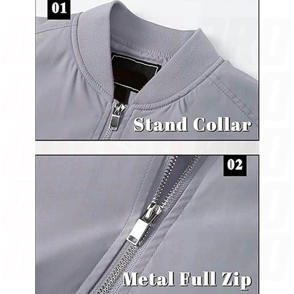 ผู้ผลิต OEM แบบกำหนดเอง แจ็คเก็ตบอมเบอร์แบบซิปเต็มตัว คอตั้ง สไตล์ลำลองแนวสตรีทแวร์ แจ็คเก็ตนักบินแบบซิปเต็มตัว รับทำแบรนด์องค์กร