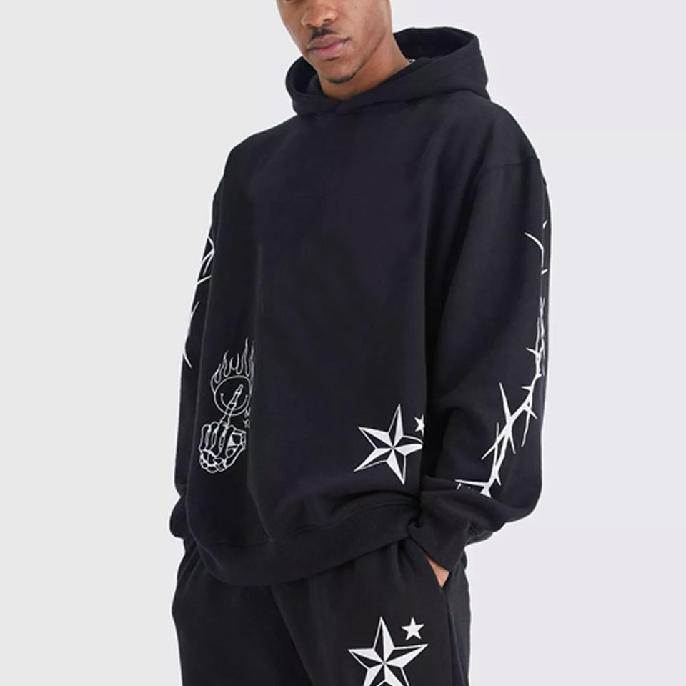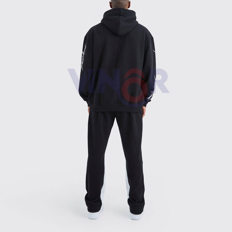 ชุดวอร์มมีฮู้ดสำหรับผู้ชายชุดวิ่งสองชิ้นสำหรับผู้ชายชุดวอร์มผ้าฝ้ายพิมพ์ลายขอบขอบขอบตัดแบบเรียบ
