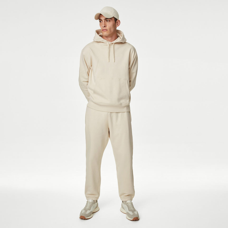 ชุดวอร์มมีฮู้ดสำหรับผู้ชายชุดวอร์มแบบสองชิ้นสำหรับวิ่งชุดวอร์มผ้าคอตตอนพิมพ์ลายขอบขอบขอบผ้าดิบงานตามสั่ง