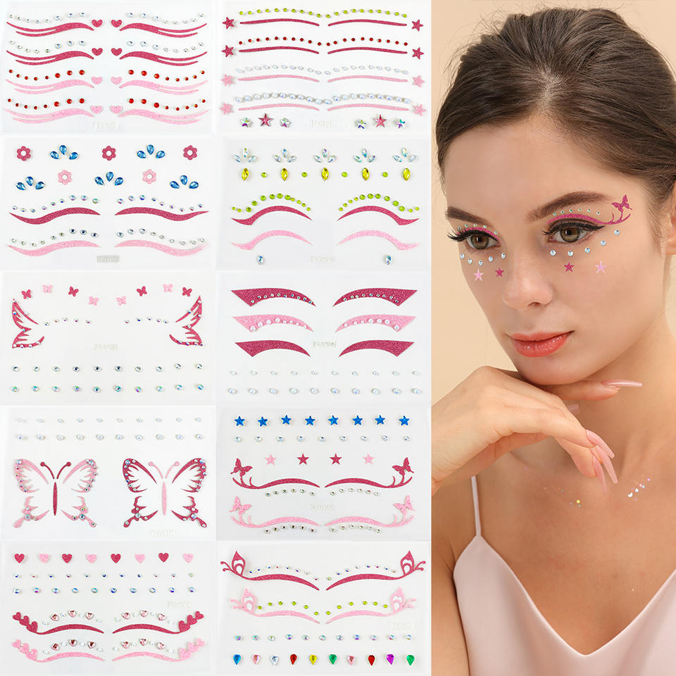 สติกเกอร์ติดหน้าลายเพชรน่ารักสีชมพูสำหรับเด็กผู้หญิง ลายผีเสื้อหรูหรา ประดับเพชร ติดตั้งง่าย กันน้ำ ติดทนนาน