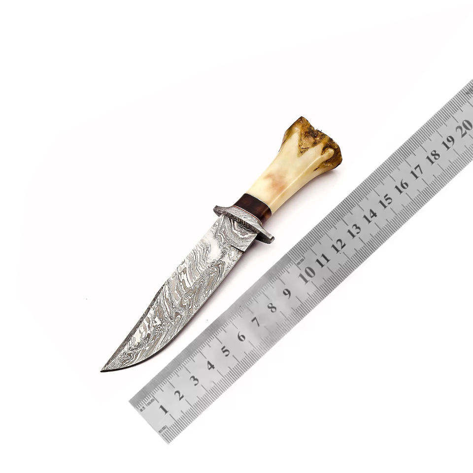 Custom OEM Damascus Steel Bowie Knife with Sheath Deer Horn Handle Handmade Hunting Knife Fixed Blade Knives Ideal for Survival