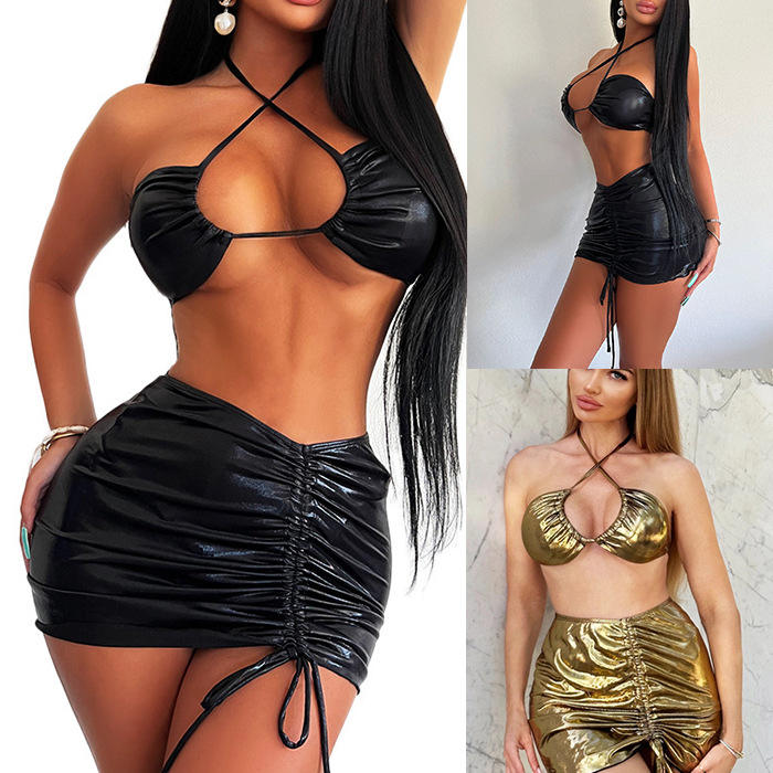 Custom OEM Fashion the Latest Gold Stamping Sexy Beach Girl Mini Micro Bikini Set Trend 3 Pieces Brazilian Swimwear Set