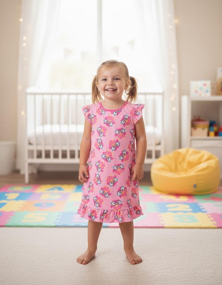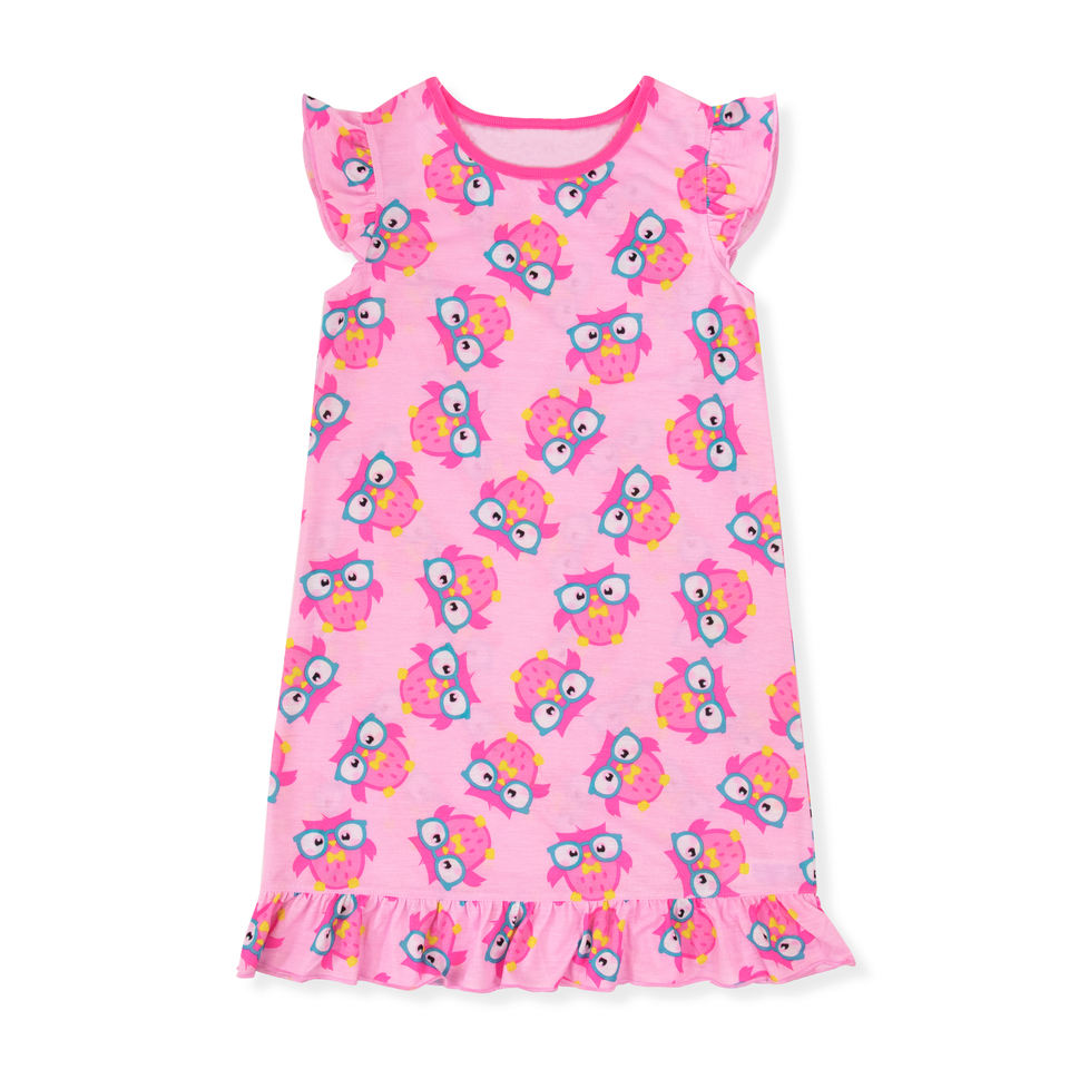 Custom OEM Girl Pink Owl Print Flame Resistant Nightgown
