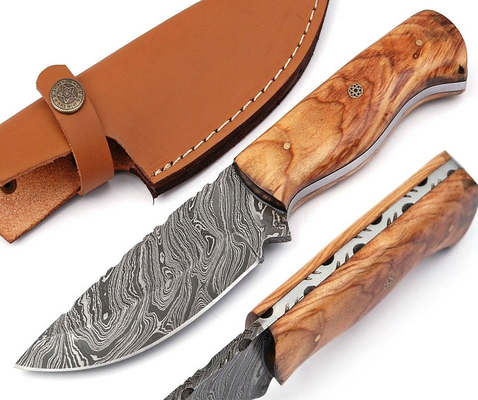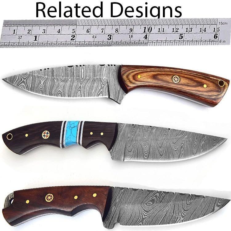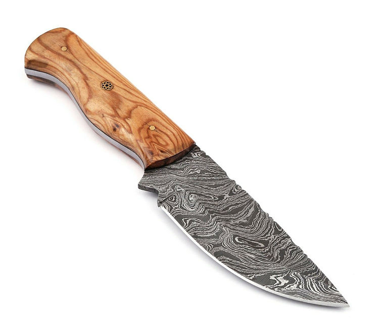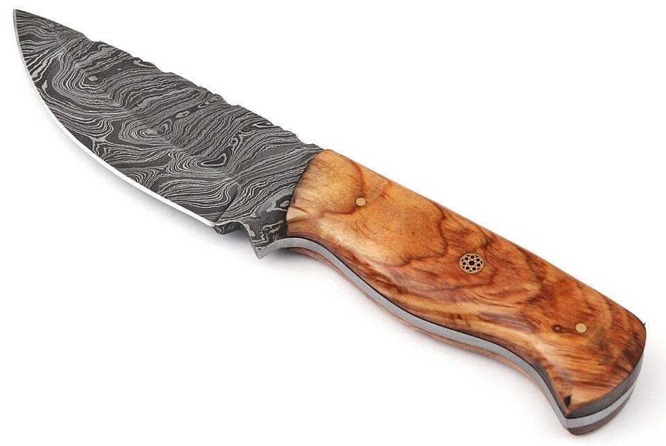 มีดล่าสัตว์เหล็กดามัสกัสทำมือแบบ OEM พร้อมด้ามไม้และเขาสัตว์ ยี่ห้อ Zafar Traders รุ่น ZR1515