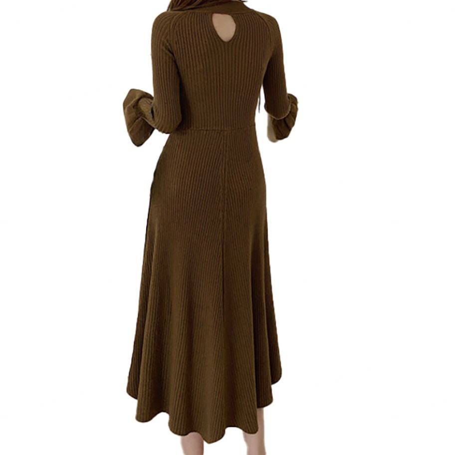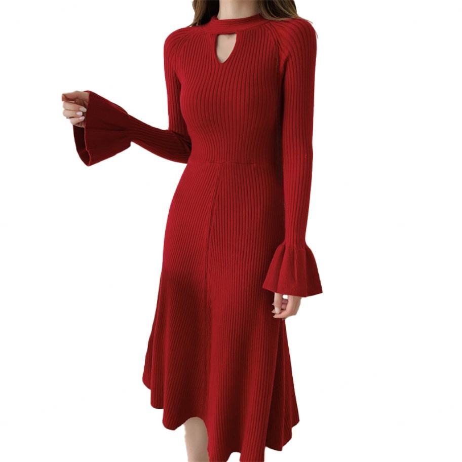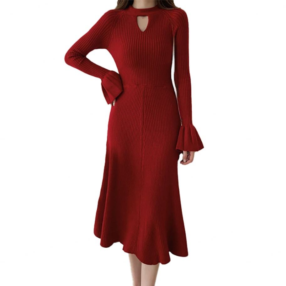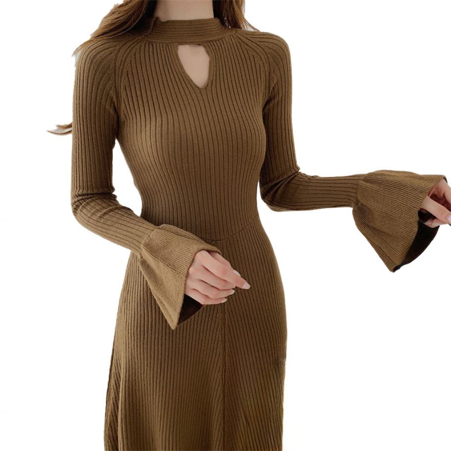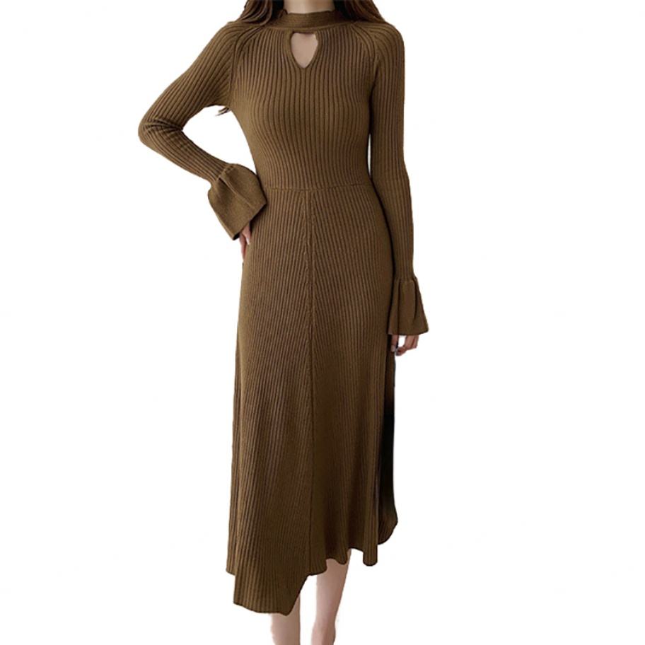 เดรสไหมพรมคอทรงกลม แขนยาวทรงบาน สีพื้น เรียบหรู สไตล์ลำลอง เหมาะสำหรับใส่ไปทำงาน คุณภาพสูง ผลิตตามสั่ง (OEM) สำหรับผู้หญิง