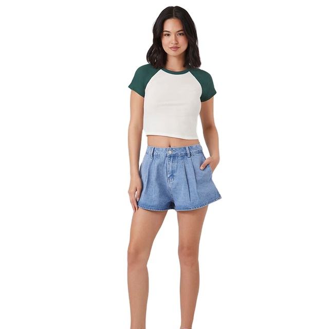 เสื้อครอปท็อปผู้หญิงทรงเข้ารูป ระบายอากาศ แห้งเร็ว คอกลม แขนสั้น น้ำหนักเบา ขายส่ง รับผลิตตามแบบ OEM ขายดีช่วงซัมเมอร์