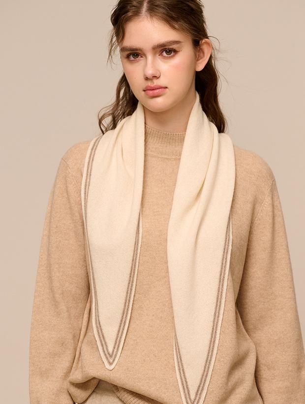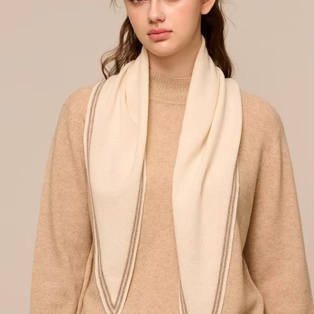 ผ้าพันคอแคชเมียร์แท้ 100% น้ำหนักเบา แบบสามเหลี่ยม ดีไซน์หรูหรา ขอบลายทาง สำหรับขายส่ง (OEM)