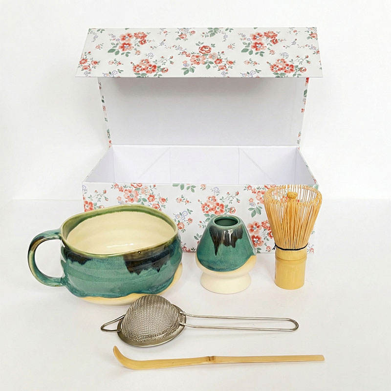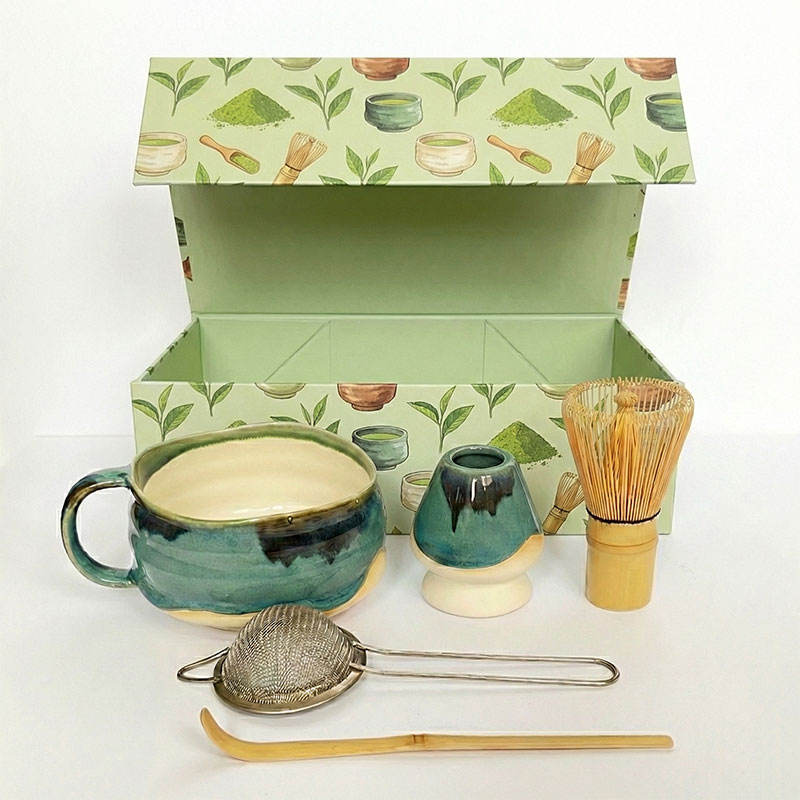ชุดชามาชาเซรามิกพร้อมที่ตีชาเซนไม้ไผ่ บรรจุภัณฑ์พร้อมโลโก้ OEM ราคาขายส่ง