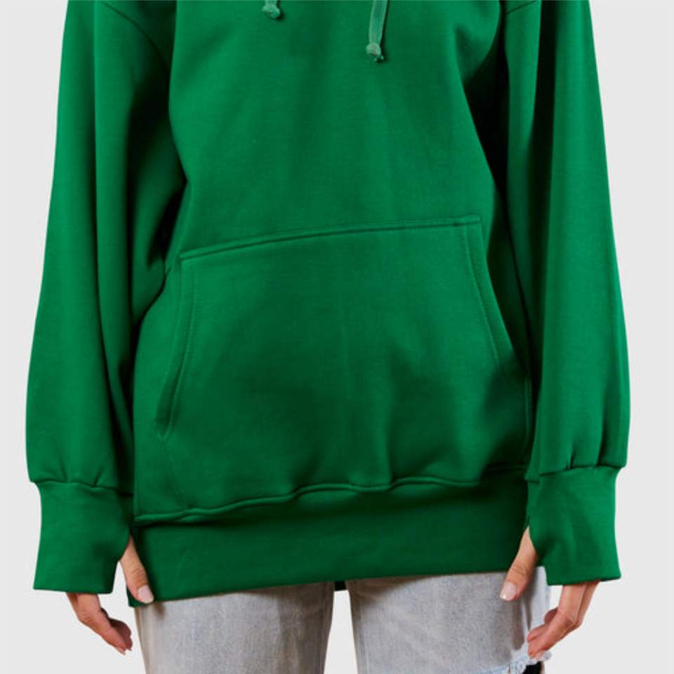 เสื้อฮู้ดผ้าฟลีซผ้าฝ้ายสีเขียวมีสีและงานปักตามสั่ง