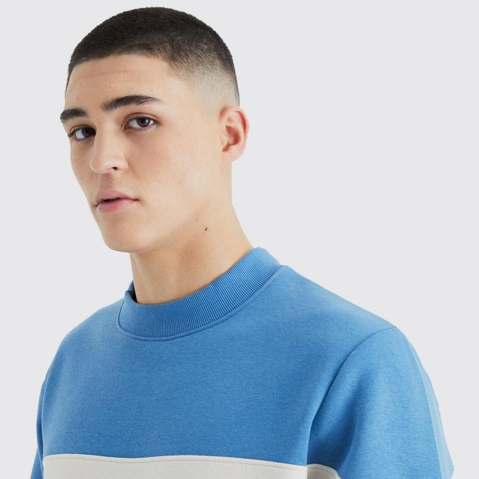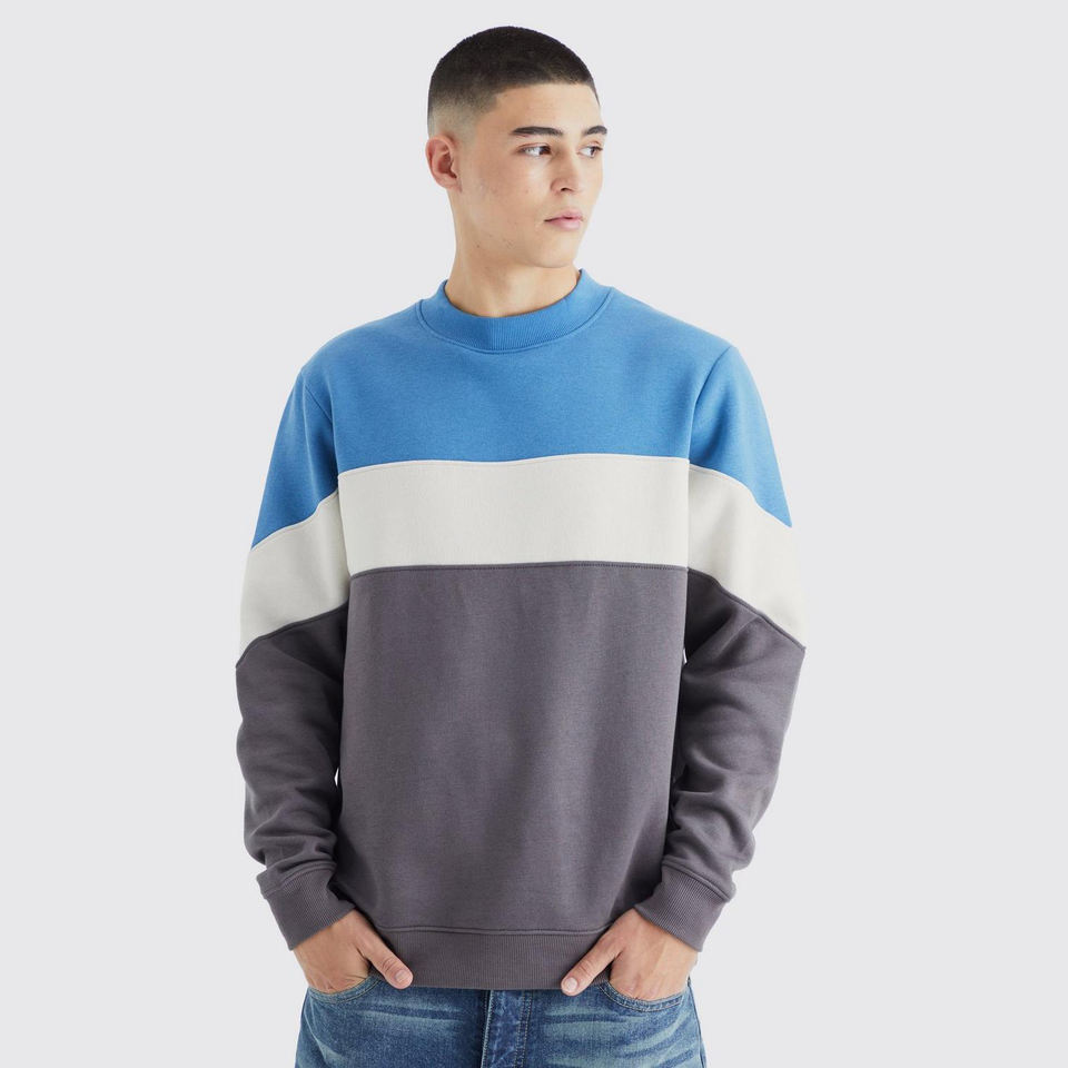 ชื่อสินค้า:เสื้อสเวตเตอร์ผู้ชายทรงโอเวอร์ไซส์ ลายบล็อกสี