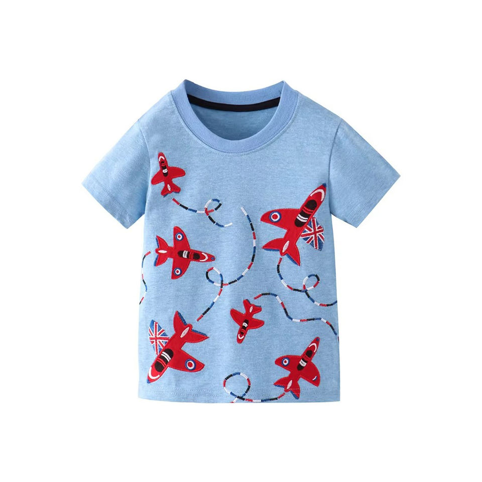 เสื้อทีเชิ้ตเด็กผู้ชายแขนสั้นผ้าคอตตอนคอมบ์แท้แบบถัก100% ออกแบบได้ตามต้องการ