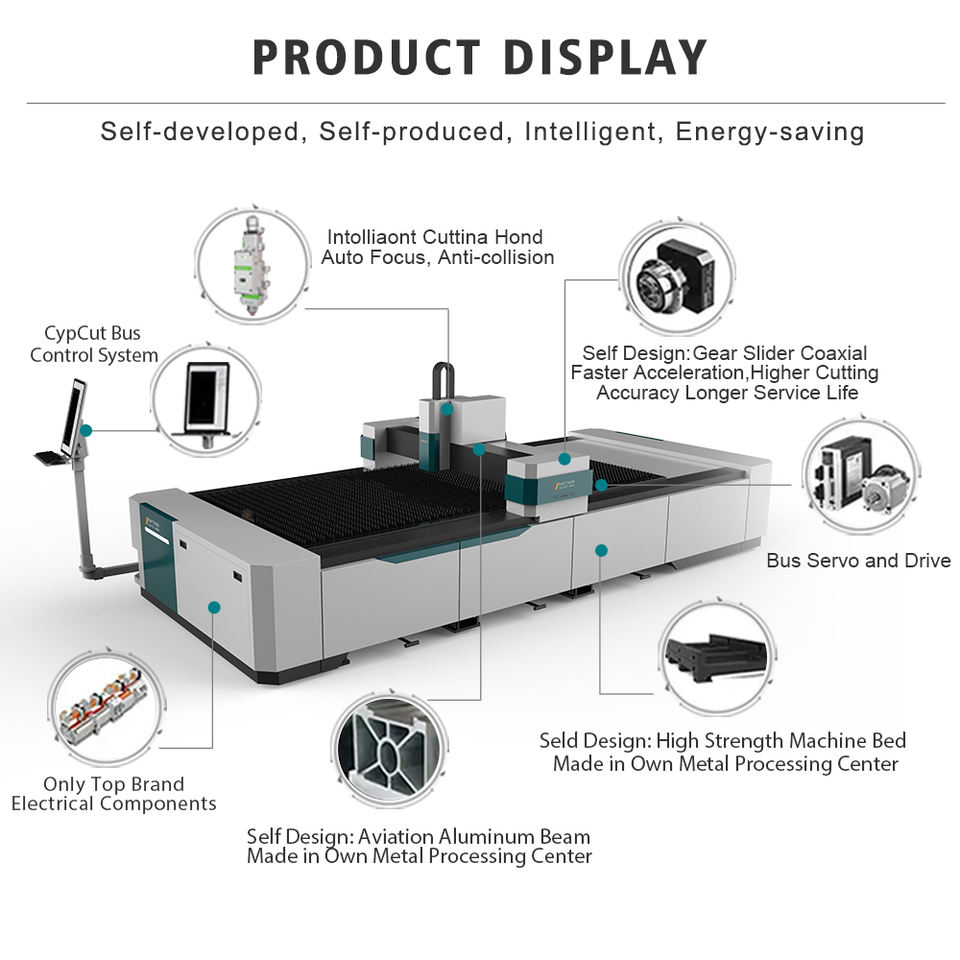 เครื่องตัดเลเซอร์ไฟเบอร์ CNC แบบเปิด กำลัง 3000W 6000W 12000W สำหรับตัดโลหะ สแตนเลส และเหล็กกล้าคาร์บอน รับผลิตแบบ OEM ODM