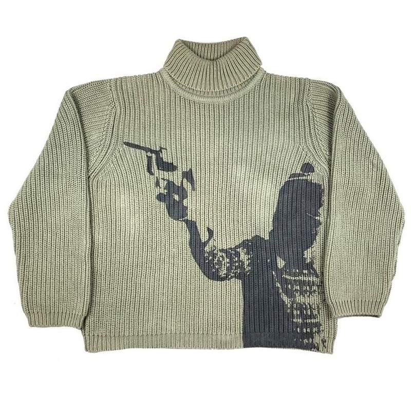สเวตเตอร์คอเต่าของผู้ชาย Y2K โอเวอร์ไซซ์สเวตเตอร์ถักแบบสวมหัวพิมพ์ลายเสื้อถักแฟชั่น