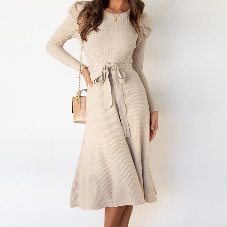 เดรสไหมพรมแขนยาวแฟชั่นใหม่สำหรับผู้หญิงฤดูหนาว ทรงเอไลน์ สไตล์ลำลอง รับผลิตแบบ OEM ODM