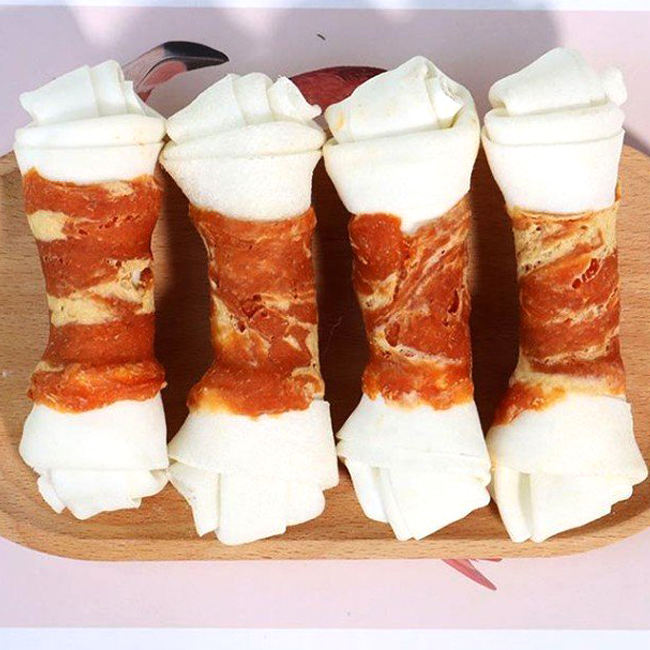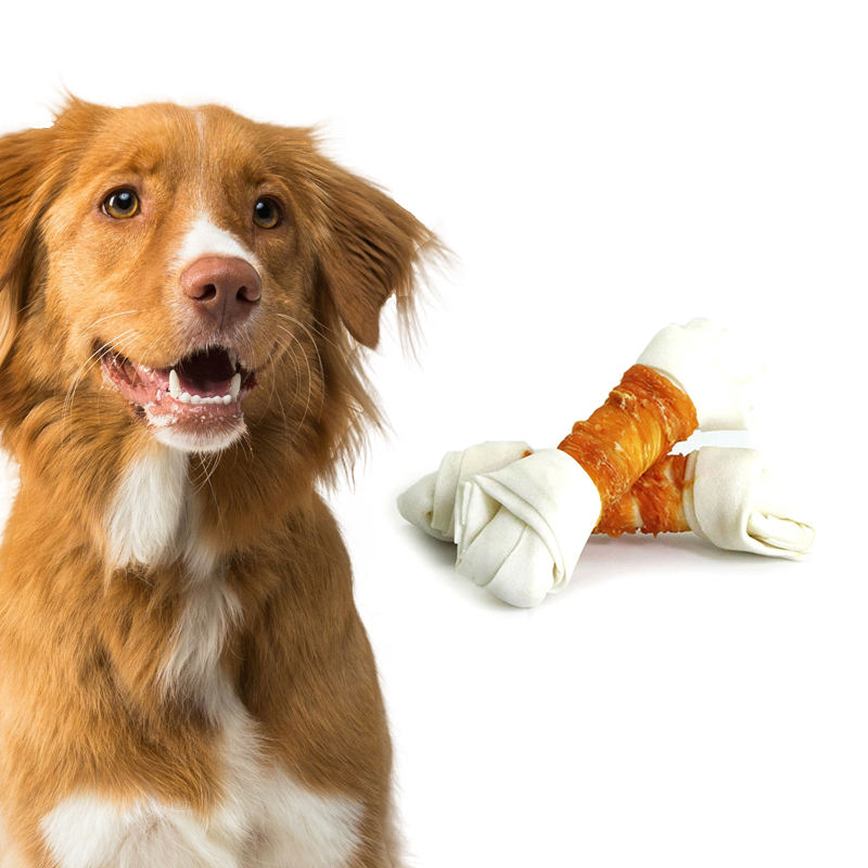 ขนมสุนัขแบบผูกเชือกสีขาวสำหรับฝึกทันตกรรมขนมสุนัขแห้งอาหาร