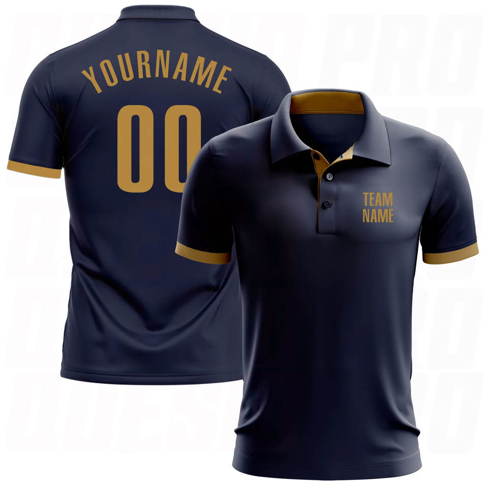 เสื้อโปโล OEM แบบกำหนดเอง คุณภาพสูง โพลีเอสเตอร์ สำหรับผู้ชาย สีกรมท่า สีทองโบราณ เสื้อโปโลสำหรับเล่นกอล์ฟ ระบายอากาศได้ดี ซับเหงื่อ แห้งไว เหมาะสำหรับการเล่นกีฬา