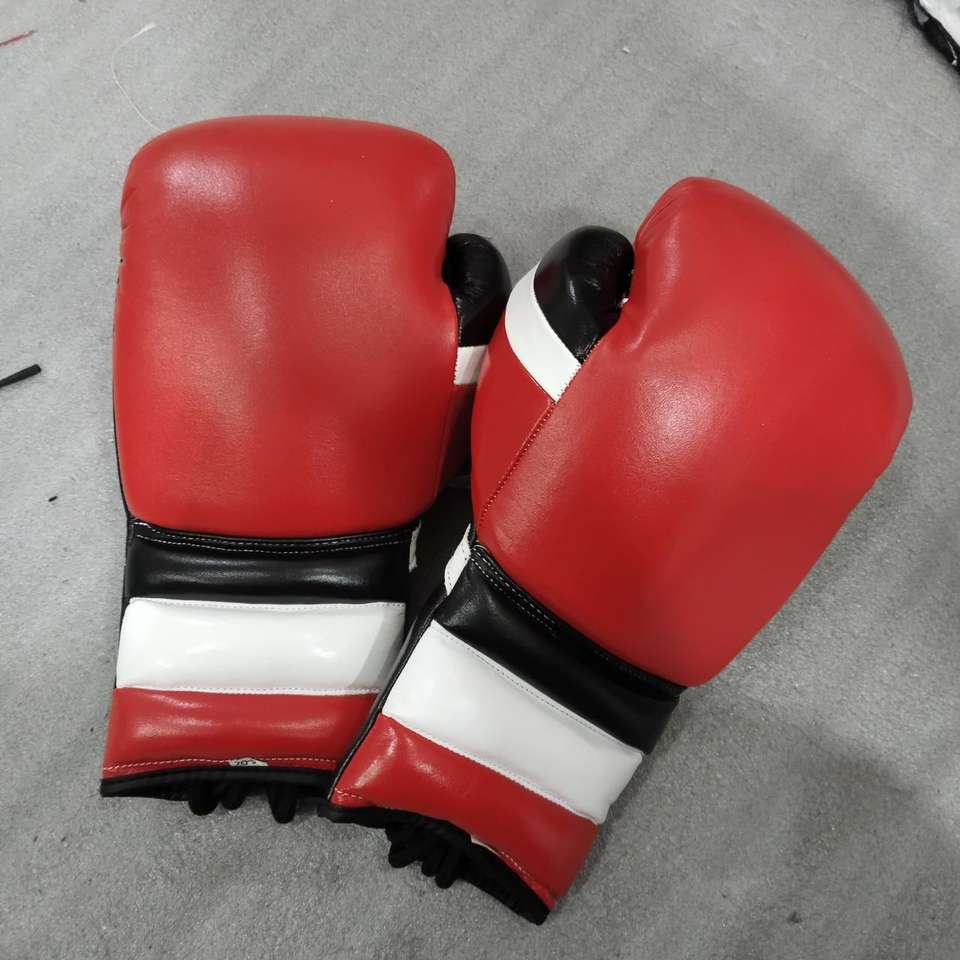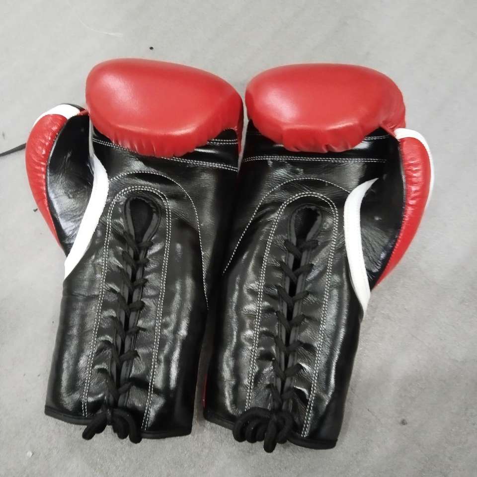 ถุงมือชกมวยแบบผูกเชือกสีแดง ดำ และขาว ผลิตตามสั่ง (OEM) - ถุงมือฝึกซ้อมหนัง PU ระดับมืออาชีพ เพิ่มชื่อของคุณบนอุปกรณ์ของคุณ