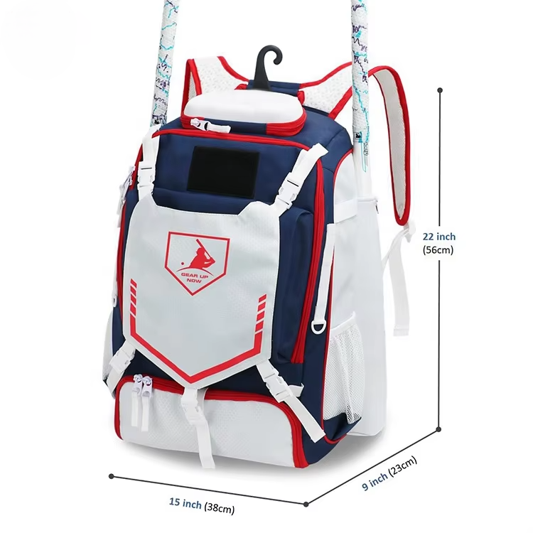 กระเป๋าอุปกรณ์เบสบอลสำเร็จรูปแบบแยกช่องใส่รองเท้ากระเป๋าใส่อุปกรณ์36-55L พิมพ์ซับลิเมชันตามสั่ง