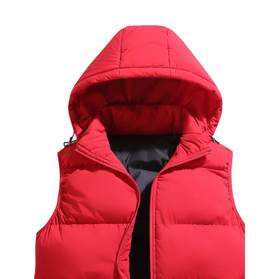 เสื้อแขนกุดสีแดงมีซิปมีฮู้ดเสื้อกั๊กกันหนาวสำหรับผู้หญิง100% ผ้าโพลีเอสเตอร์ออกแบบได้ตามต้องการ