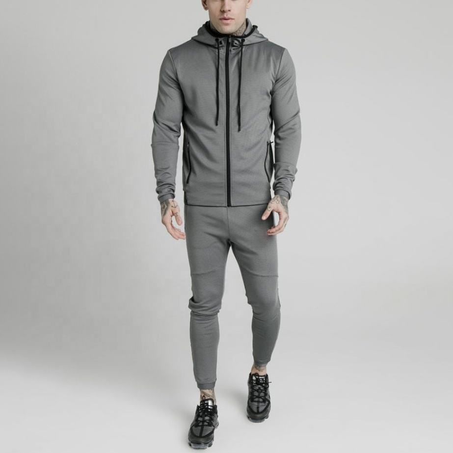 ชุดวอร์มกีฬาผู้ชายแบบสั่งทำพิเศษ OEM ชุดเซ็ต 2 ชิ้น ทรงเข้ารูป วัสดุเป็นมิตรต่อสิ่งแวดล้อม แห้งเร็ว ผลิตจากโพลีเอสเตอร์/คอตตอน แบบพัฟเฟอร์ บอมเบอร์