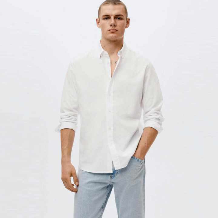 เสื้อเชิ้ตแขนยาวของผู้ชายเสื้อเชิ้ตทรงหลวมเรียบง่ายเรียบง่ายแฟชั่นลำลองใหม่ฤดูร้อนออกแบบได้ตามต้องการ