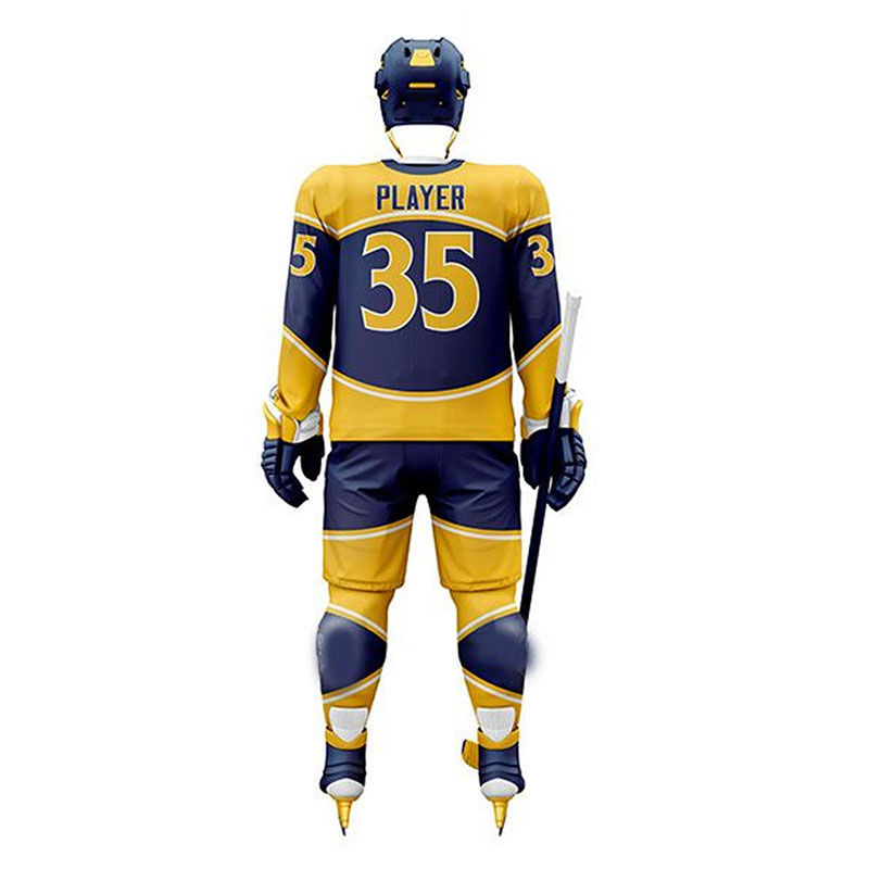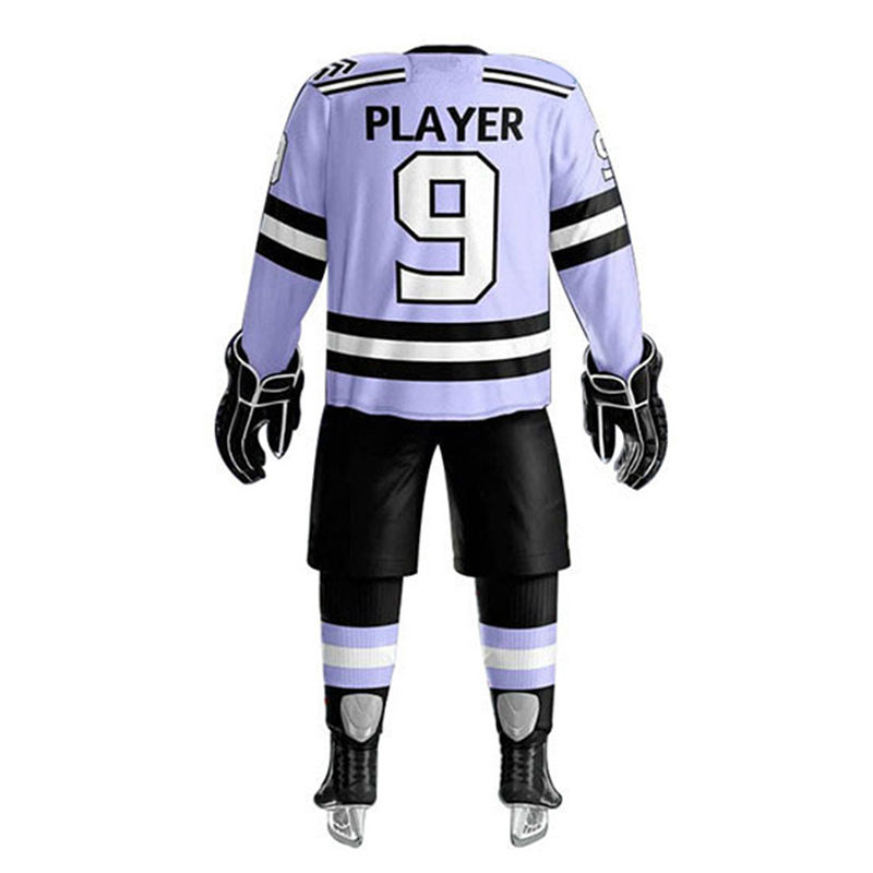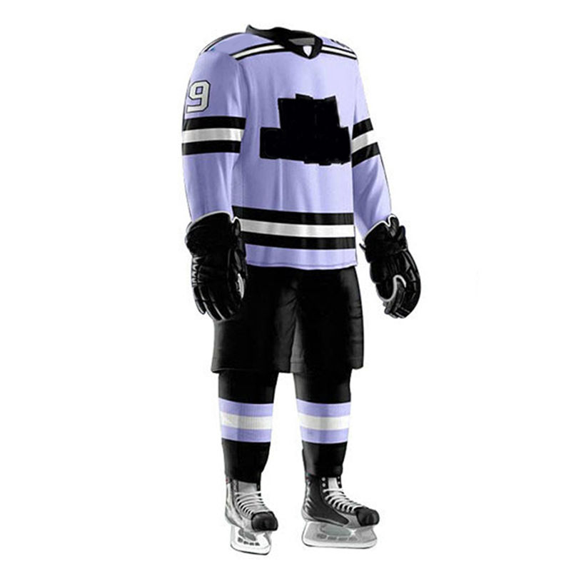 ชุดยูนิฟอร์มฮอกกี้น้ำแข็งแบบสั่งทำพิเศษสำหรับทุกเพศ ผลิตจากโพลีเอสเตอร์ แห้งเร็ว ระบายอากาศได้ดี พร้อมลายพิมพ์แบบซับลิเมชั่น เพื่อประสิทธิภาพสูงสุด