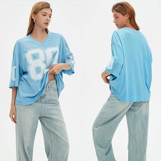 เสื้อเจอร์ซีย์ตาข่ายคอวีทรงโอเวอร์ไซส์แบบยูนิเซ็กซ์ พิมพ์ลายหมายเลข สไตล์สตรีทแวร์ ระบายอากาศได้ดี เหมาะสำหรับฤดูร้อน แฟชั่นลำลอง รับผลิตตามสั่ง (OEM) จากผู้ผลิต