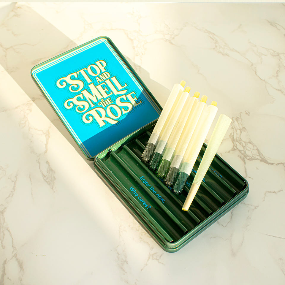 กระดาษมวนบุหรี่แบบม้วนสำเร็จรูป 6 ม้วน แบบเรียบง่าย ผลิตตามสั่ง (OEM) พร้อมกล่องโลหะกรองหรือหลอดพลาสติก