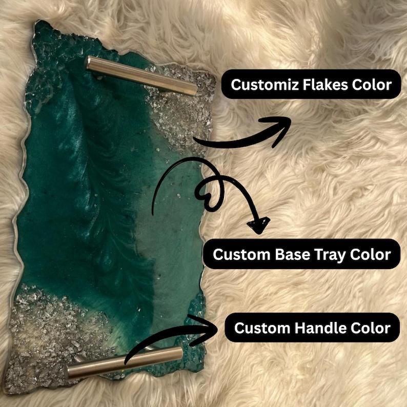ถาดเสิร์ฟเรซิ่นสีน้ำเงินมหาสมุทรแบบกำหนดเอง ทำด้วยมือ ทาสีด้วยมือ ล้างทำความสะอาดได้ พร้อมเกล็ดสีเงิน งานฝีมือเหนือกาลเวลา บรรจุภัณฑ์ปรับแต่งได้
