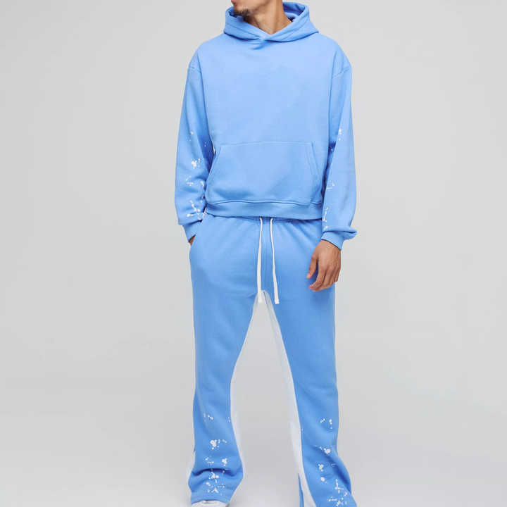 ชุดวอร์มผู้ชายทรงขาบานผ้าฝ้ายพิมพ์ลายแบบ OEM คุณภาพพรีเมียม สไตล์ใหม่ล่าสุด สำหรับใส่ลำลอง
