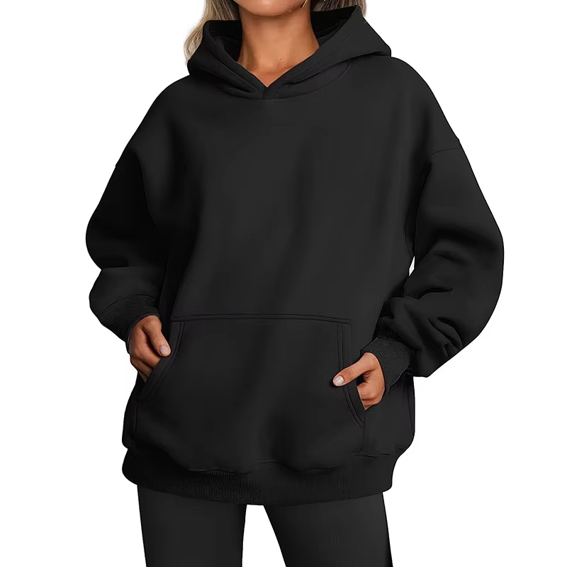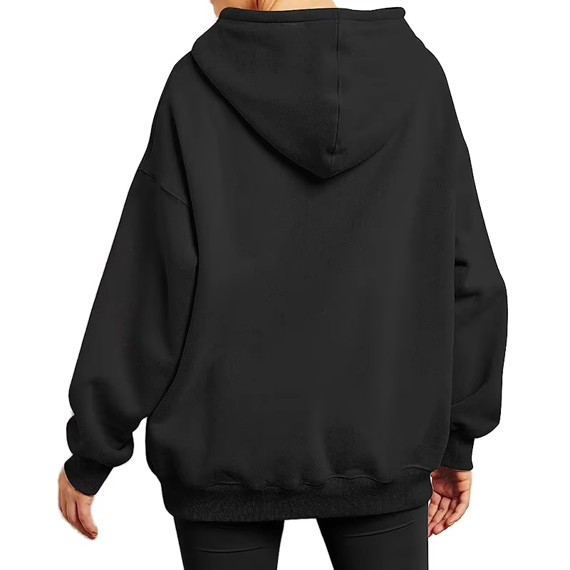 เสื้อฮู้ดดี้ผู้หญิงแบบลำลองสำหรับกิจกรรมกลางแจ้ง ดีไซน์และโลโก้ OEM ตามสั่ง ทรงโอเวอร์ไซส์ สีสันสดใส สีพื้น
