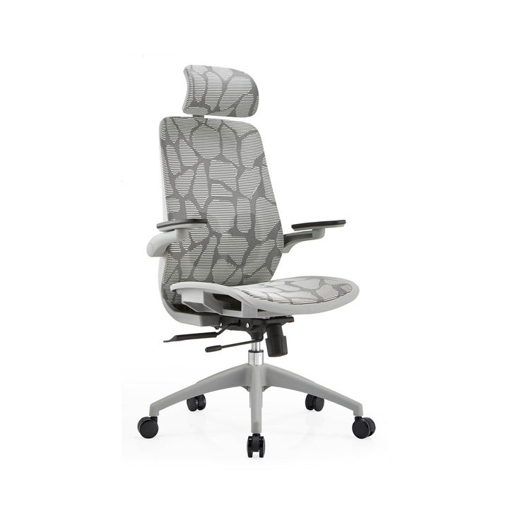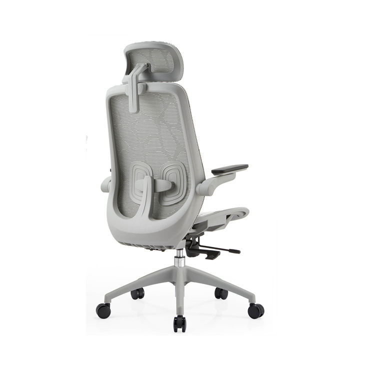 เก้าอี้สํานักงานแบบกําหนดเองเบาะที่นั่งสบายแบบสูงกลับรูปแบบพอดีเก้าอี้สํานักงานตาข่ายสีเทาตามหลักสรีรศาสตร์พร้อมเท้าไนลอน