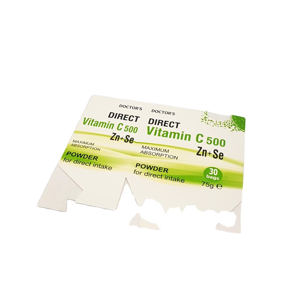 กล่องบรรจุภัณฑ์วิตามินซีแบบพิมพ์ออฟเซ็ตตามสั่ง ดีไซน์ทันสมัย พร้อมเคลือบเงา ลายนูน และปั๊มฟอยล์ทอง