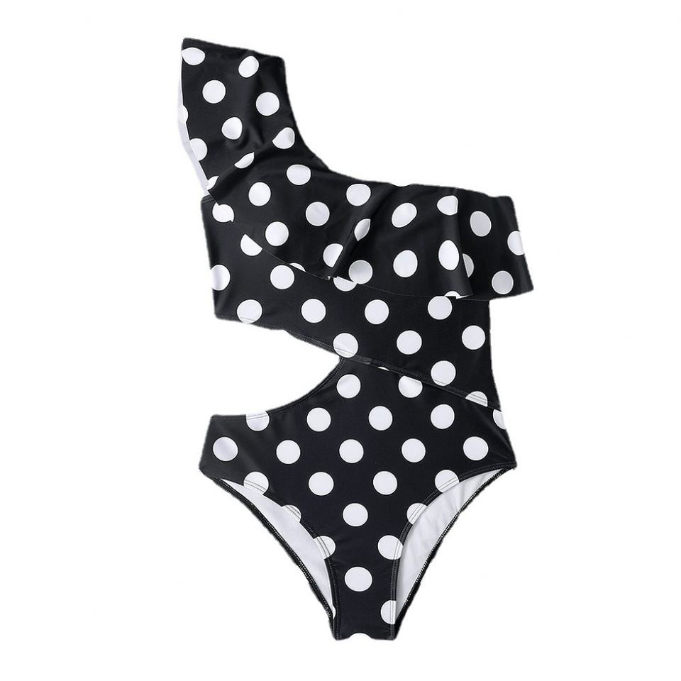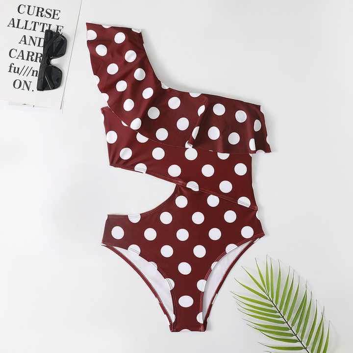 Custom One-Piece Swimsuit for Women One-Shoulder Polka Dot Monokini Bathing Suits Beachwear Sexy Ruffle Cut