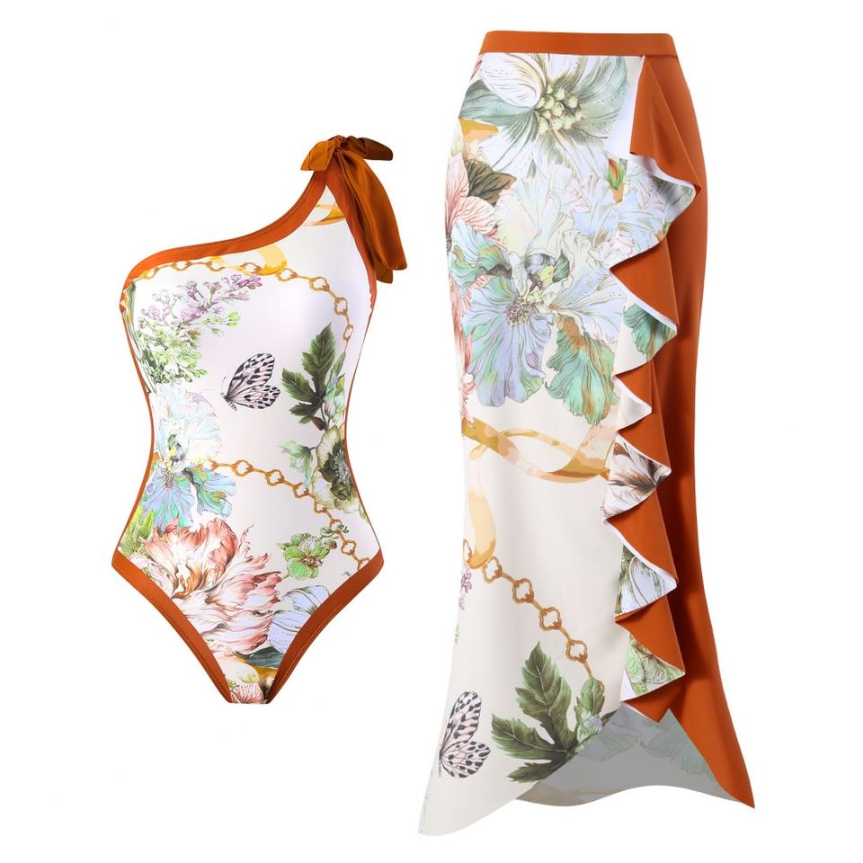 ชุดว่ายน้ำวันพีซแบบคล้องไหล่ข้างเดียว พิมพ์ลายแฟชั่นสำหรับผู้หญิง เหมาะสำหรับใส่เล่นน้ำชายหาดและใส่คู่กับบิกินี่