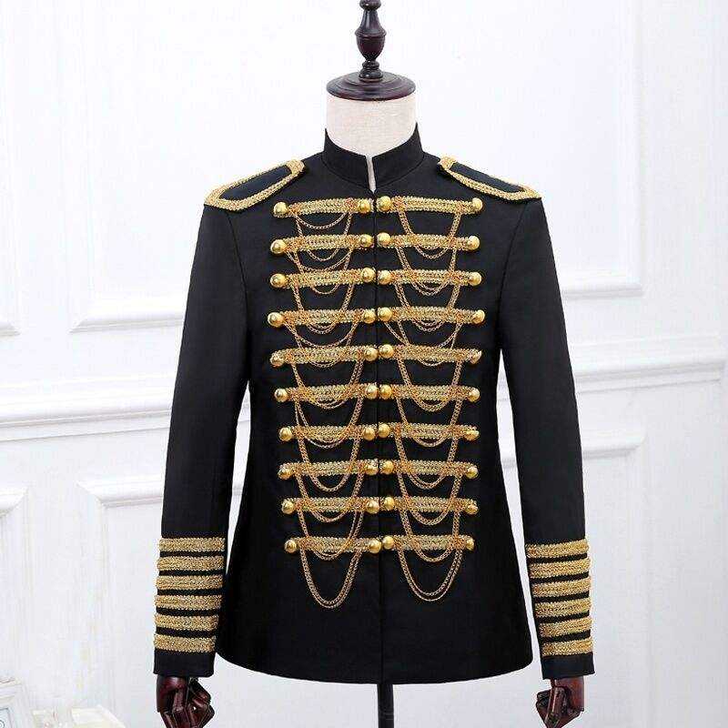เสื้อแจ็คเก็ตผู้ชายสไตล์สตีมพังก์แบบทหารม้าฮุสซาร์สีดำสำหรับขายออนไลน์แบบกำหนดเอง
