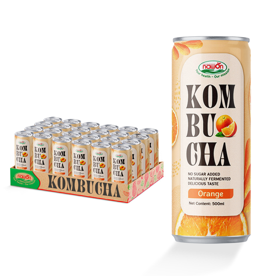 ผู้ผลิตคอมบูชาสีส้มแบบกำหนดเอง รับผลิตฉลากสินค้าส่วนตัว บริการจัดหาเครื่องดื่มจำนวนมากแบบ B2B ขายส่ง โรงงาน OEM ผลิตโดยตรงจากโรงงาน ชาหมักส่งออก