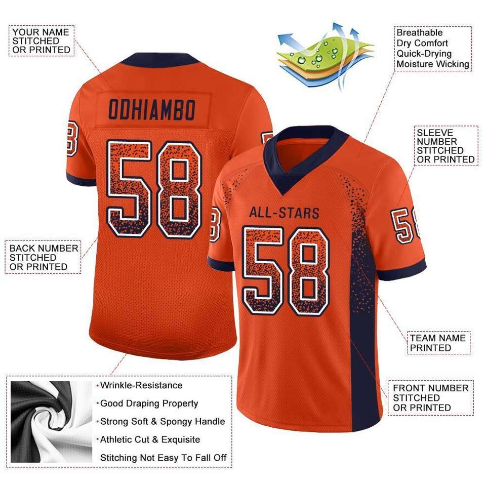 เสื้อฟุตบอลแบบตาข่ายแฟชั่นสีส้มกรมท่า-ขาวแบบกำหนดเอง