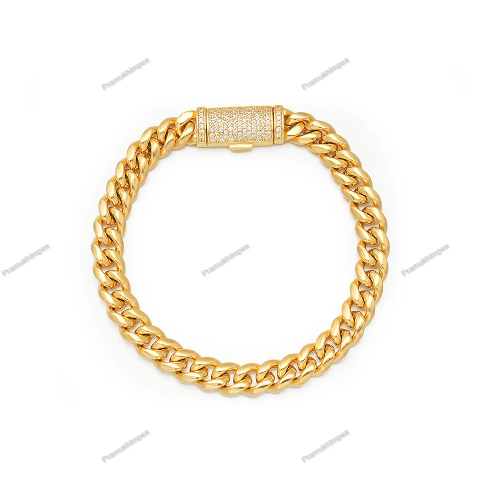 สร้อยข้อมือฮิปฮอปชุบทองสีเหลืองไมอามี่คิวบาแบบเรียบสร้อยข้อมือสเตอร์ลิงสีเงินครบรอบปีที่มีคุณภาพสูงสั่งซื้อตามสั่ง