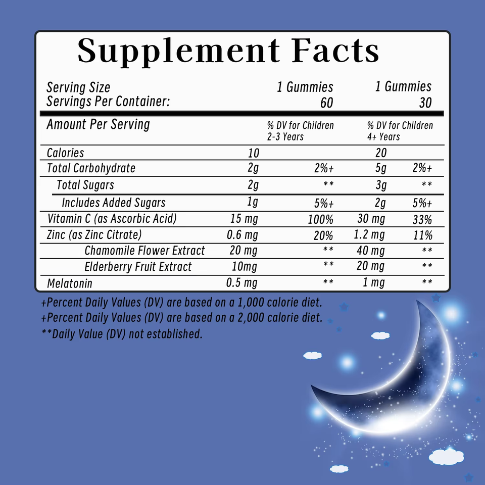 ส่วนผสมหลัก:วิตามินซี, สังกะสี, สารสกัดดอกคาโมมายล์, สารสกัดจากผลเอลเดอร์เบอร์รี่, เมลาโทนิน